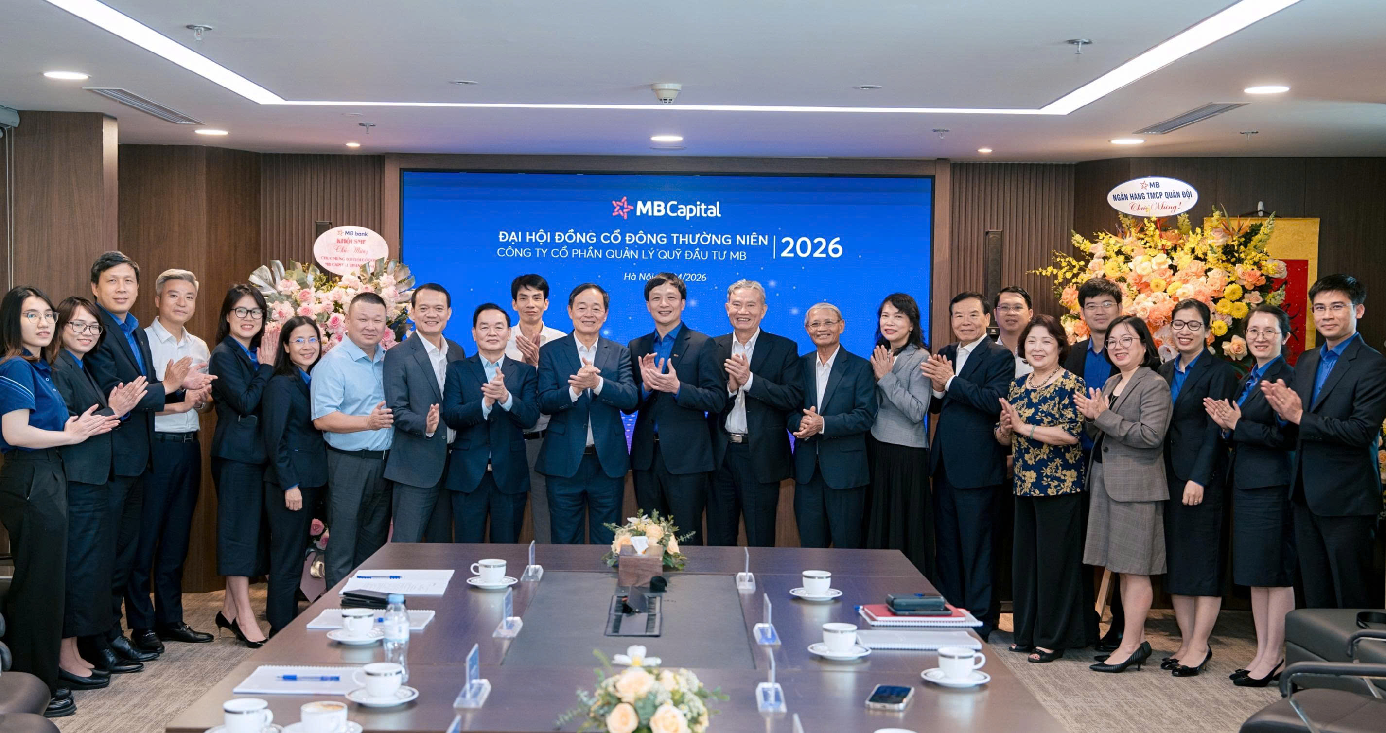 Sáng ngày 10/04/2026, Công ty Quản lý Quỹ Đầu tư MB (MB Capital) đã tổ chức thành công Đại hội đồng Cổ đông thường niên 2026 với sự tham dự của hơn ~ 92 % cổ đông, cùng đại diện Lãnh đạo Ngân hàng TMCP Quân đội (“MB”), Hội đồng Quản trị, Ban Kiểm soát và các đại biểu. Đại hội ghi nhận những thành tựu, kết quả hoạt động kinh doanh năm 2025 cũng như thể hiện sự đồng thuận cao và sự tin tưởng của các Quý cổ đông và đại biểu vào định hướng phát triển của Công ty trong giai đoạn mới. Năm 2025, MBCapital đạt kết quả kinh doanh ấn tượng, với lợi nhuận trước thuế đạt 158 tỷ đồng, hoàn thành 122% kế hoạch; tổng tài sản quản lý (AUM) đạt gần 15.000 tỷ đồng, tăng trưởng mạnh so với năm trước. Kết quả này khẳng định năng lực quản lý đầu tư và hiệu quả vận hành của MB Capital. Các quỹ đầu tư do Công ty quản lý tiếp tục duy trì hiệu suất vượt trội, trong đó hiệu quả quỹ cổ phiếu thuộc top 5, quỹ trái phiếu top 1 thị trường. Bước sang năm 2026, MB Capital đặt mục tiêu tăng trưởng đột phá với lợi nhuận trước thuế đạt 390 tỷ đồng, Tổng tài sản quản lý trên 32.000 tỷ đồng, thu hút 180.000 Khách hàng. MB Capital xác định tiếp tục tập trung ưu tiên xây dựng, phát triển đội ngũ nhân sự chất lượng, đẩy mạnh chuyển đổi số trong hoạt động kinh doanh và quản trị vận hành, tăng cường liên kết và khai thác hệ sinh thái MB Group, đa dạng hóa sản phẩm…nhằm mục tiêu tăng hiệu quả đầu tư và chất lượng quản lý tài sản cho Khách hàng, quản trị chi phí tối ưu, đảm bảo sự phát triển bền vững, lâu dài. Với nền tảng vững chắc được xây dựng qua 20 năm và liên tục được củng cố, hỗ trợ từ Ngân hàng TMCP Quân đội cũng như các Quý cổ đông, MB Capital đặt quyết tâm tăng tốc trong giai đoạn tới, tạo bước bứt phá mạnh mẽ để khẳng định vị thế trong nhóm các Công ty quản lý quỹ hàng đầu tại Việt Nam.